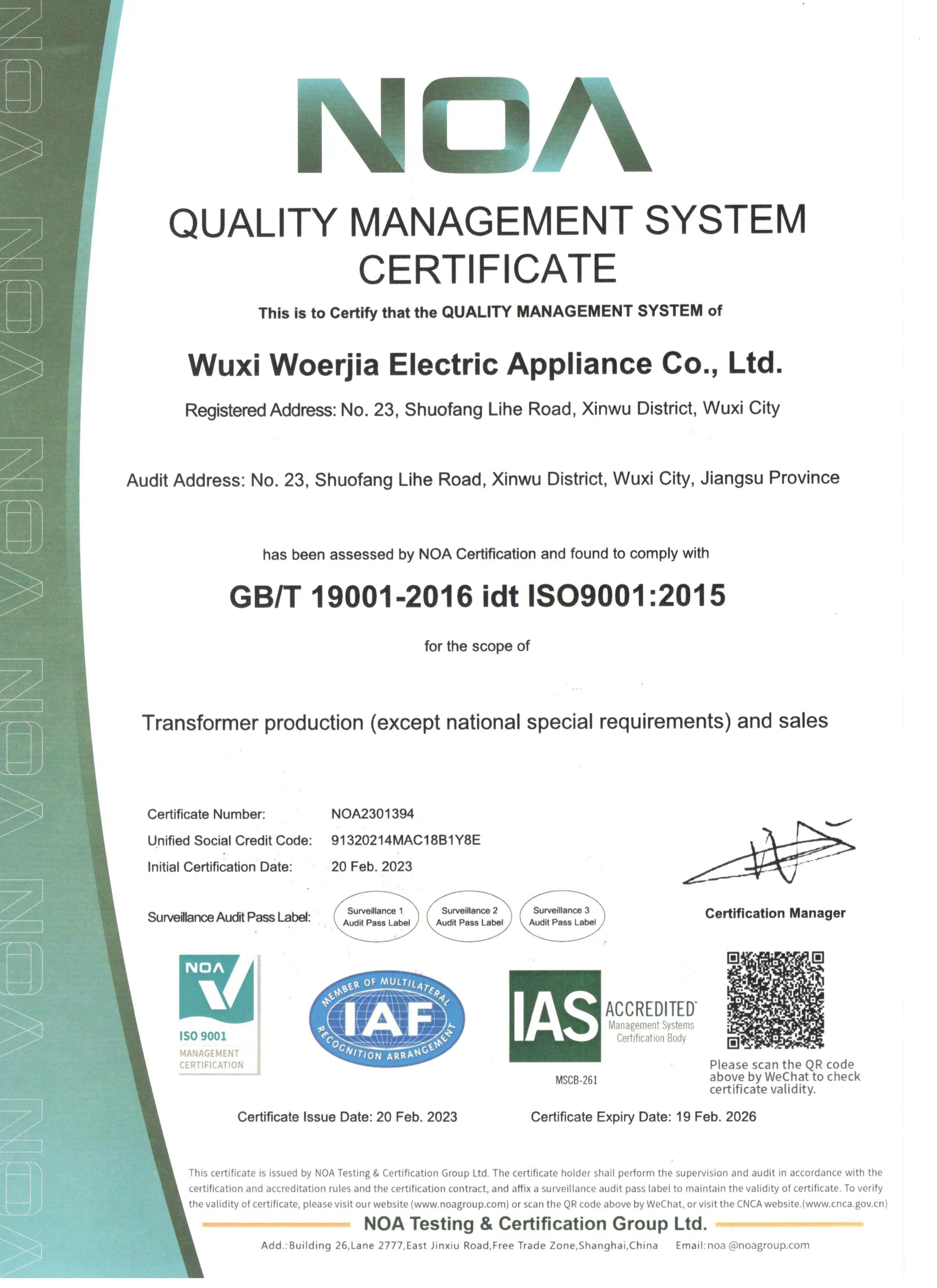 無(wú)錫沃爾佳電器有限公司創(chuàng)建于2022年,公司前身為2003年創(chuàng)建的無(wú)錫布萊特電器有限公司(1997年創(chuàng)建的無(wú)錫市通華電器開(kāi)關(guān)廠(chǎng)),是專(zhuān)業(yè)生產(chǎn)制造電氣成套設(shè)備的現(xiàn)代化企業(yè)。公司位于無(wú)錫市新區(qū)碩放工業(yè)園內(nèi),毗鄰無(wú)錫機(jī)場(chǎng),處于滬寧高速公路與312國(guó)道旁,交通十分便利。公司占地3000多平方米,擁有固定資產(chǎn)近千萬(wàn)元。公司管理機(jī)構(gòu)健全,生產(chǎn)設(shè)施完善,工藝裝備先進(jìn),檢測(cè)流程齊全。公司生產(chǎn)的變壓器、電抗器可實(shí)現(xiàn)各類(lèi)機(jī)械設(shè)備供電、控制、電源、變壓、隔離保護(hù)之需。BK、JBK、JBK3、JBK4、JBK5、CXB系列控制變壓器,單相變壓器DG、三相變壓器SG、GSG、CSG、ZSG系列產(chǎn)品均已獲得歐盟CE認(rèn)證。
